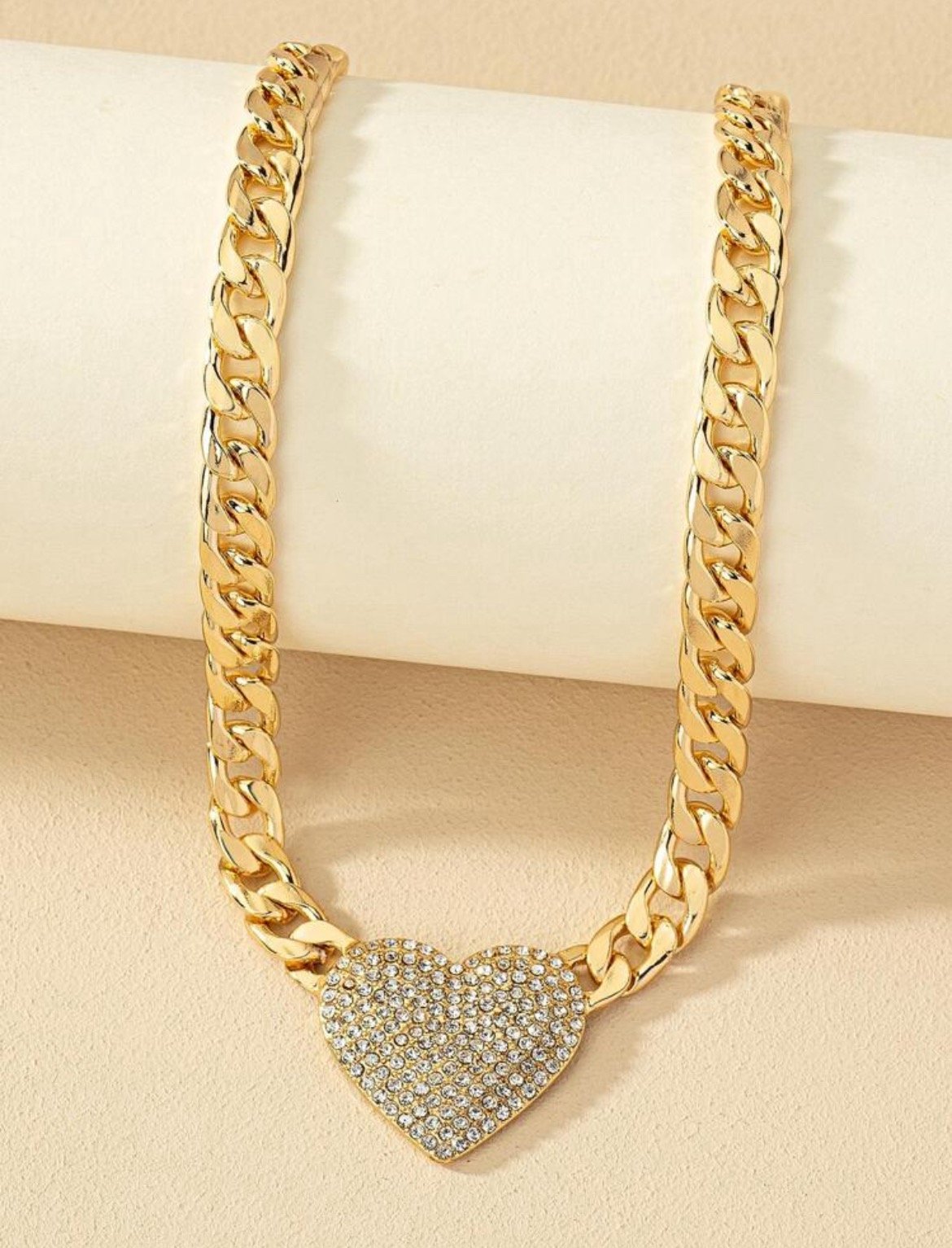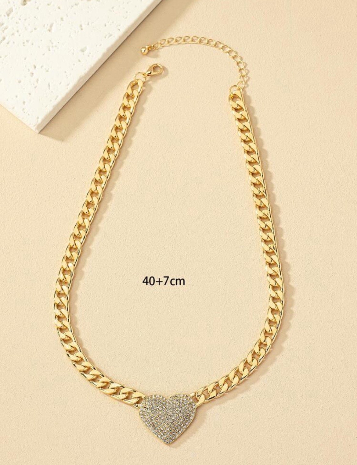 Rhinestone Heart Cuban Link Iron Alloy Choker Necklace