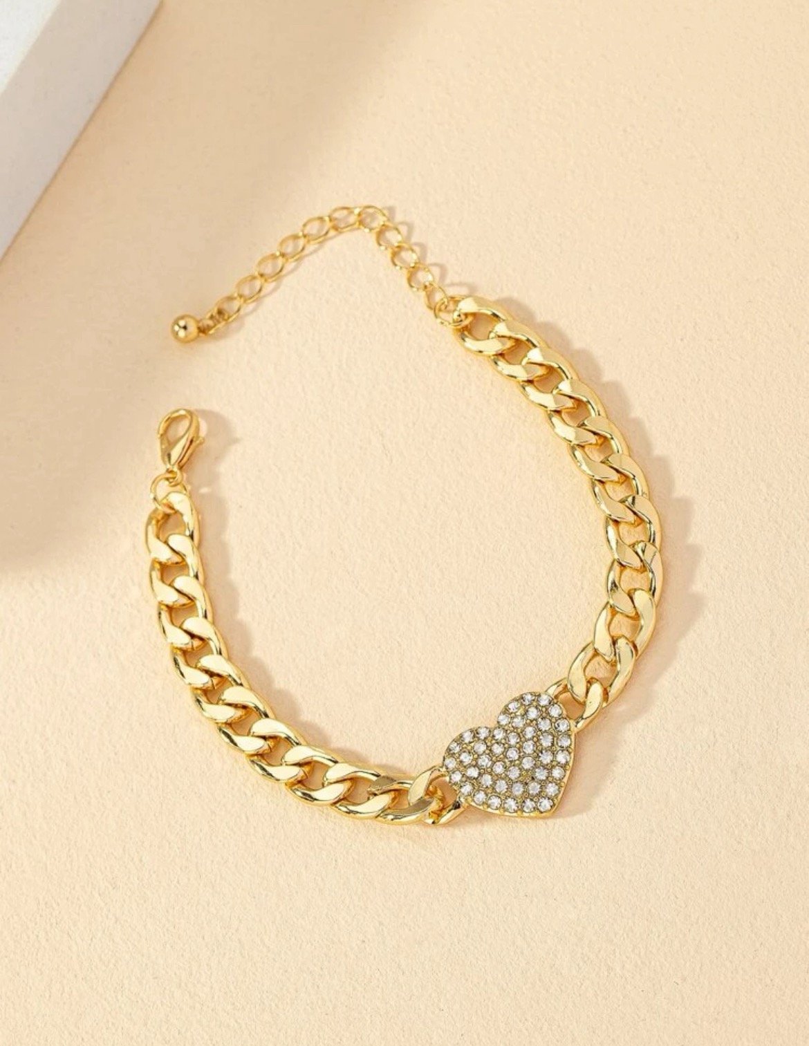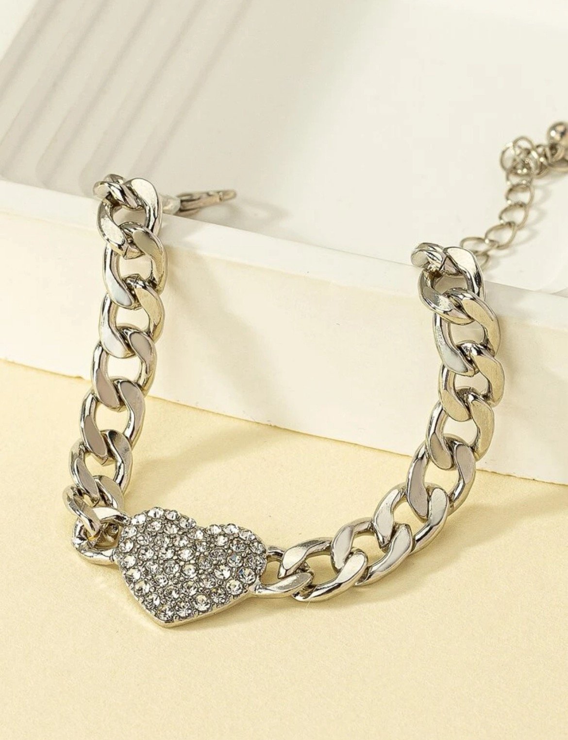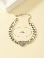 Rhinestone Heart Cuban Link Iron Alloy Bracelet