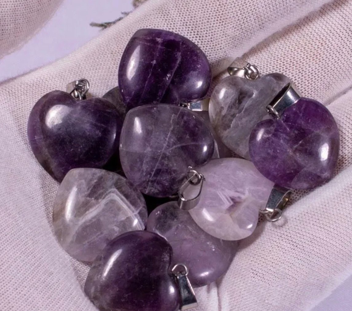 100% Natural Crystal Amethyst Stone Heart Shaped Pendant Sterling Silver Necklace