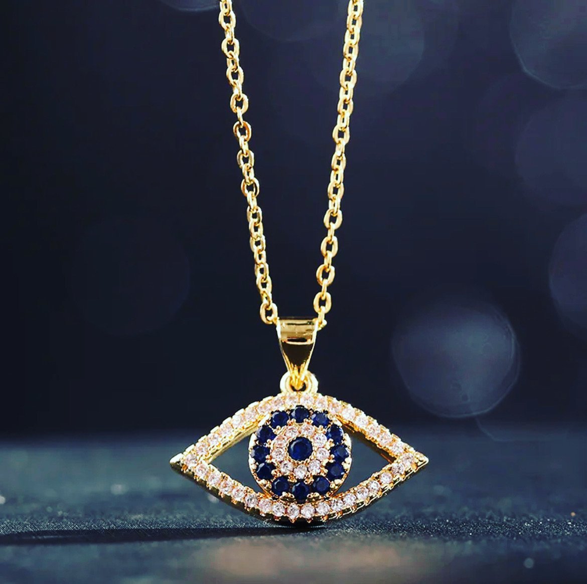 Vintage Evil Eye Titanium Steel 18k Gold Plated Diamond Pendant Tarnish Free Necklace