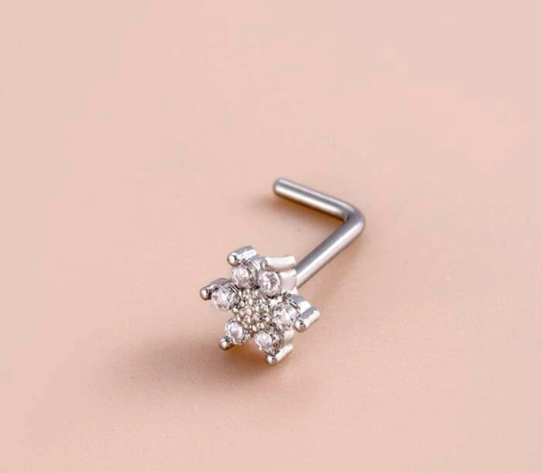 Silver Stainless Steel Cubic Zirconia Nose Stud Ring