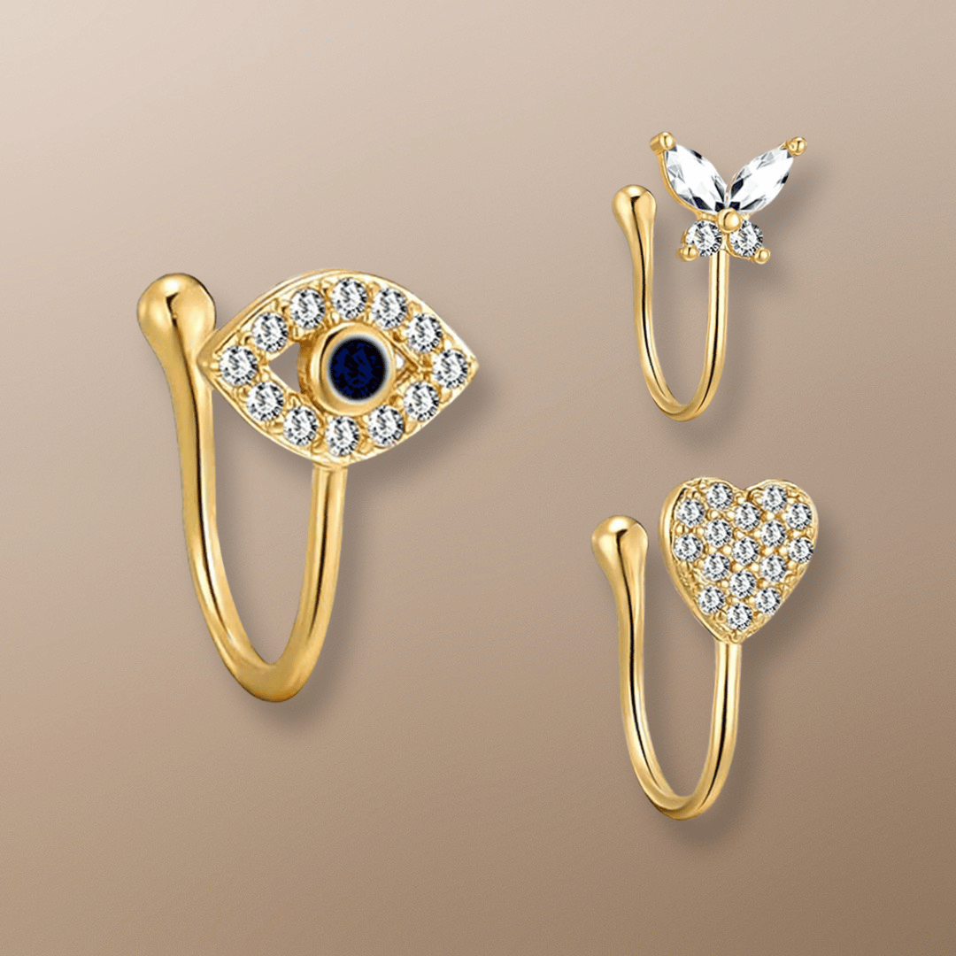 18k Gold Plated Brass Rhinestone Clip On Nose Cuff Non Piercing Evil Eye Nose Ring