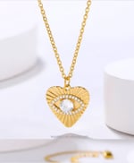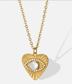 18k Gold Plated Texture Cubic Zirconia Evil Eye Heart Necklace