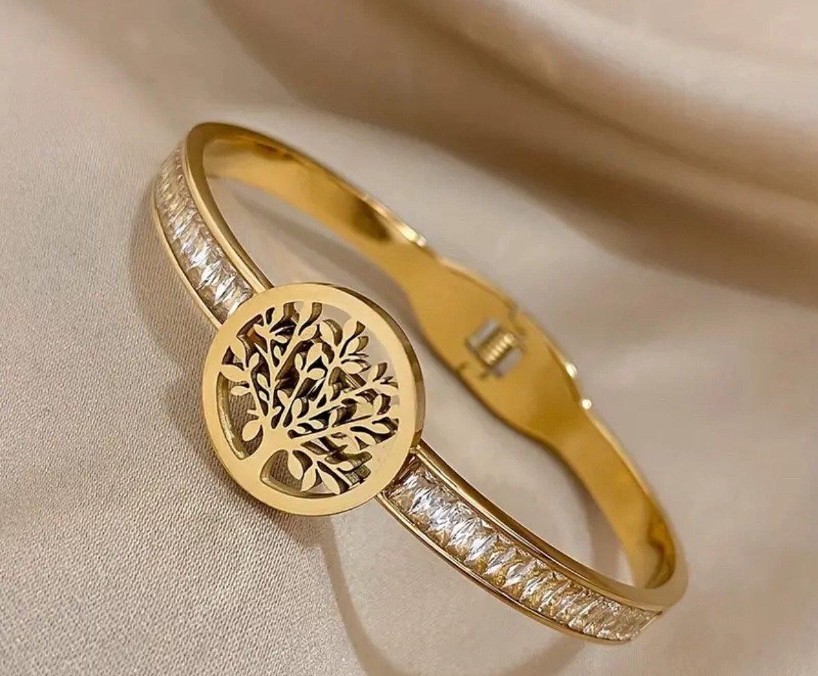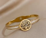 Gold Plated Stainless Steel Cubic Zirconia Tree Of Life Bracelet