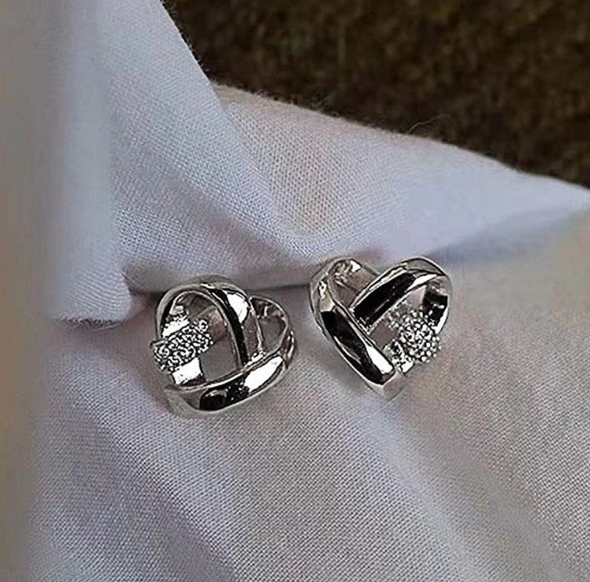 Yellow or White Gold Plated Stainless Steel Heart Earrings Studs