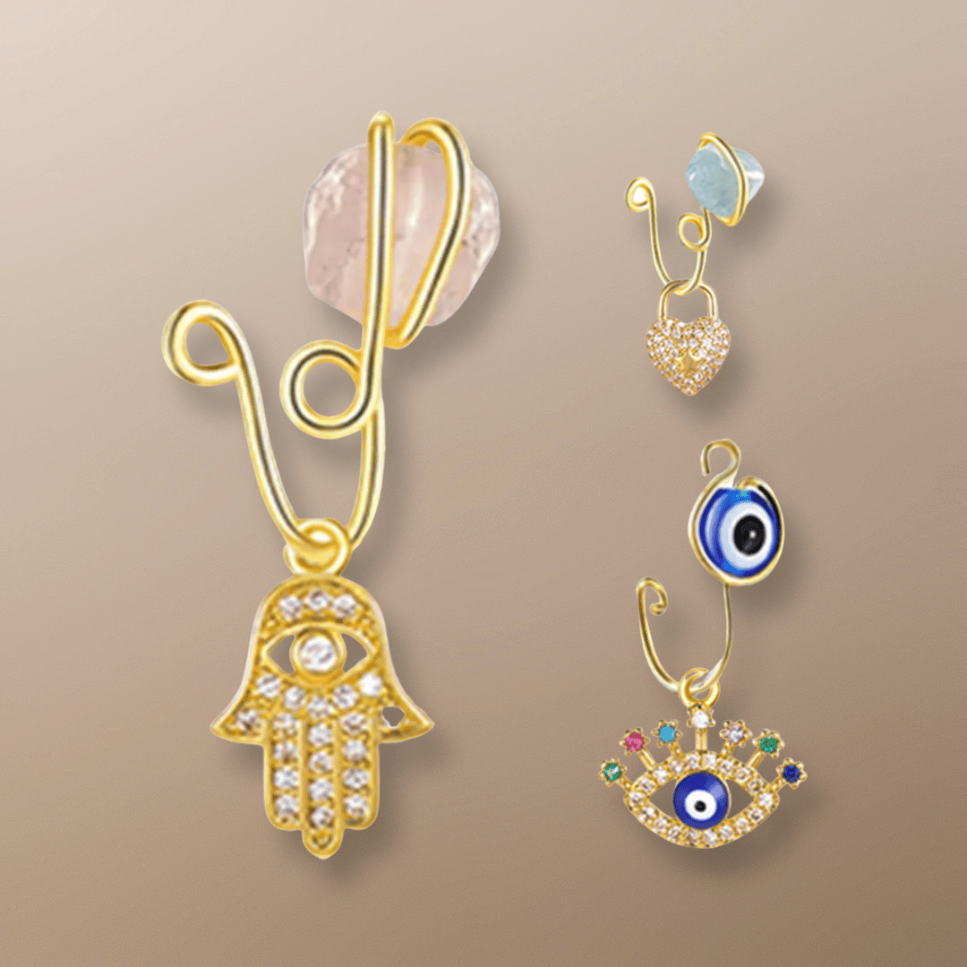 Natural Stone Hamsa Hand Nose Cuff Ring With Charm