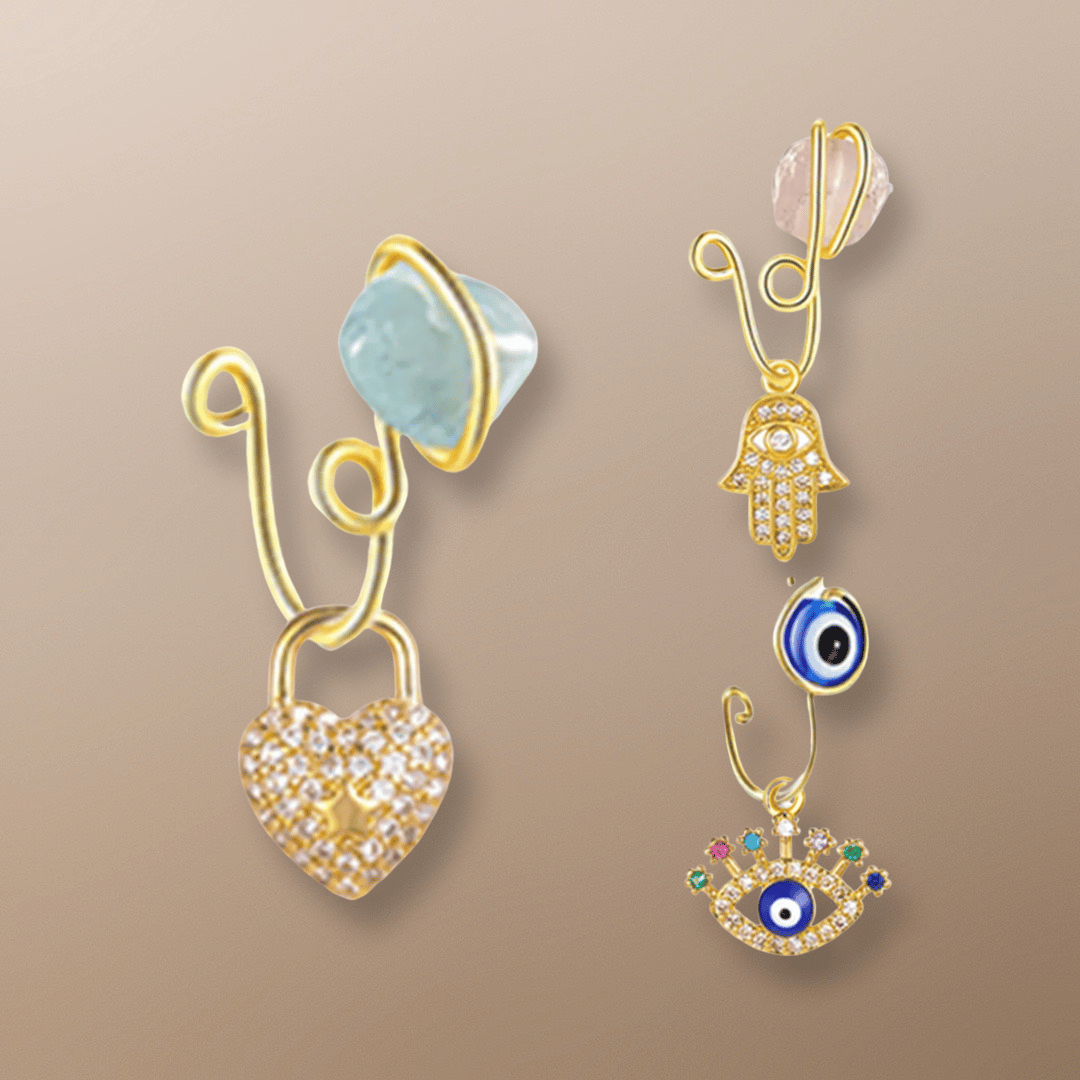 Natural Stone Heart Nose Cuff Ring With Charm