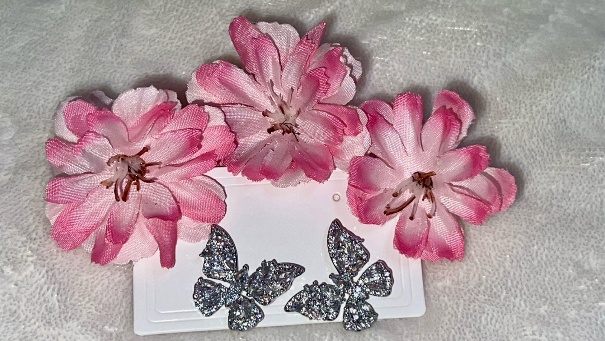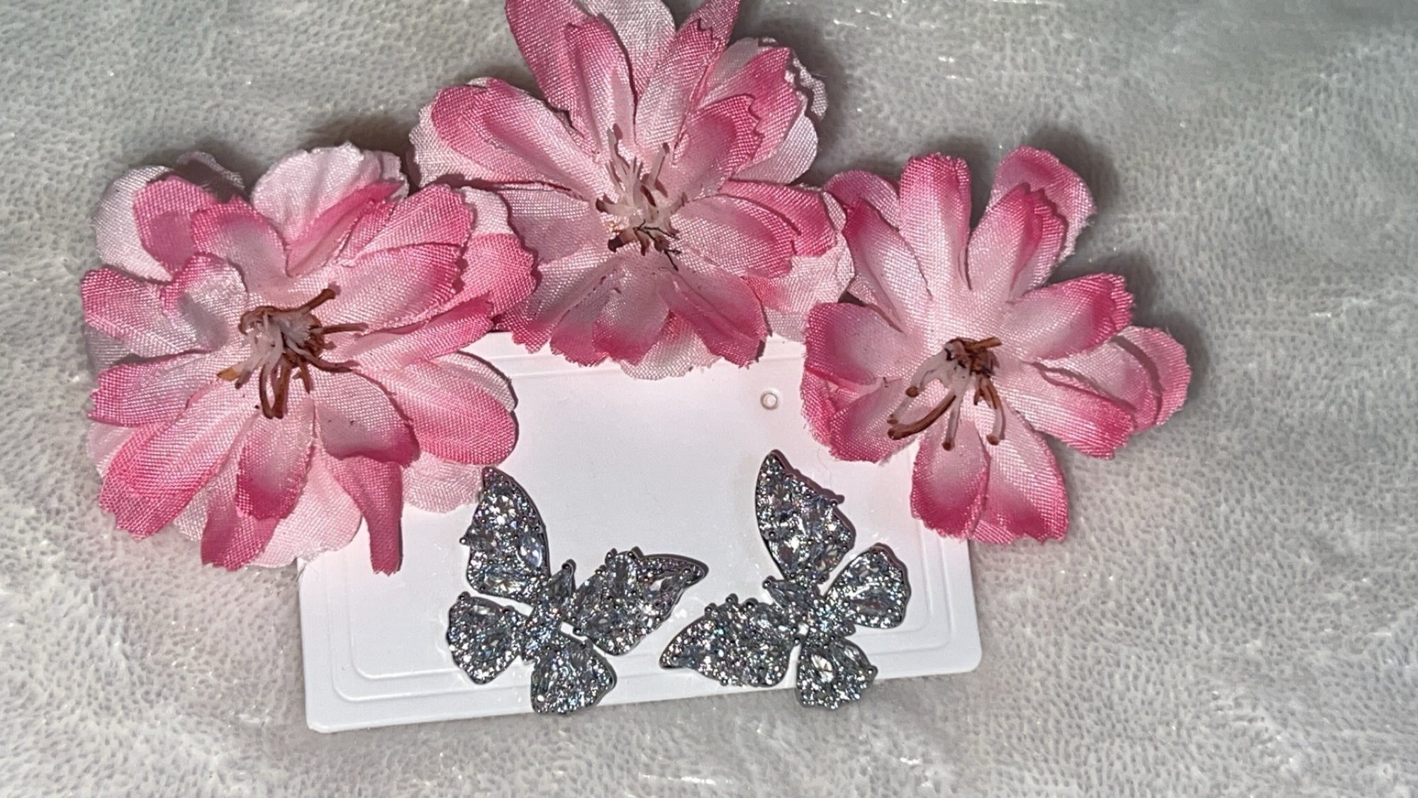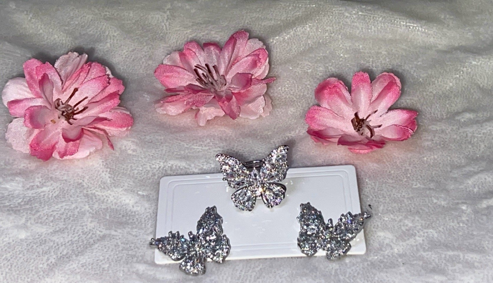 Cubic Zirconia White Gold Plated Stainless Steel Butterfly Earrings