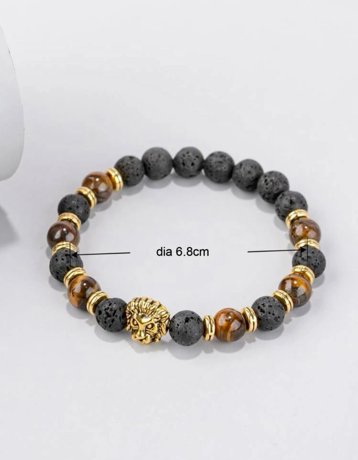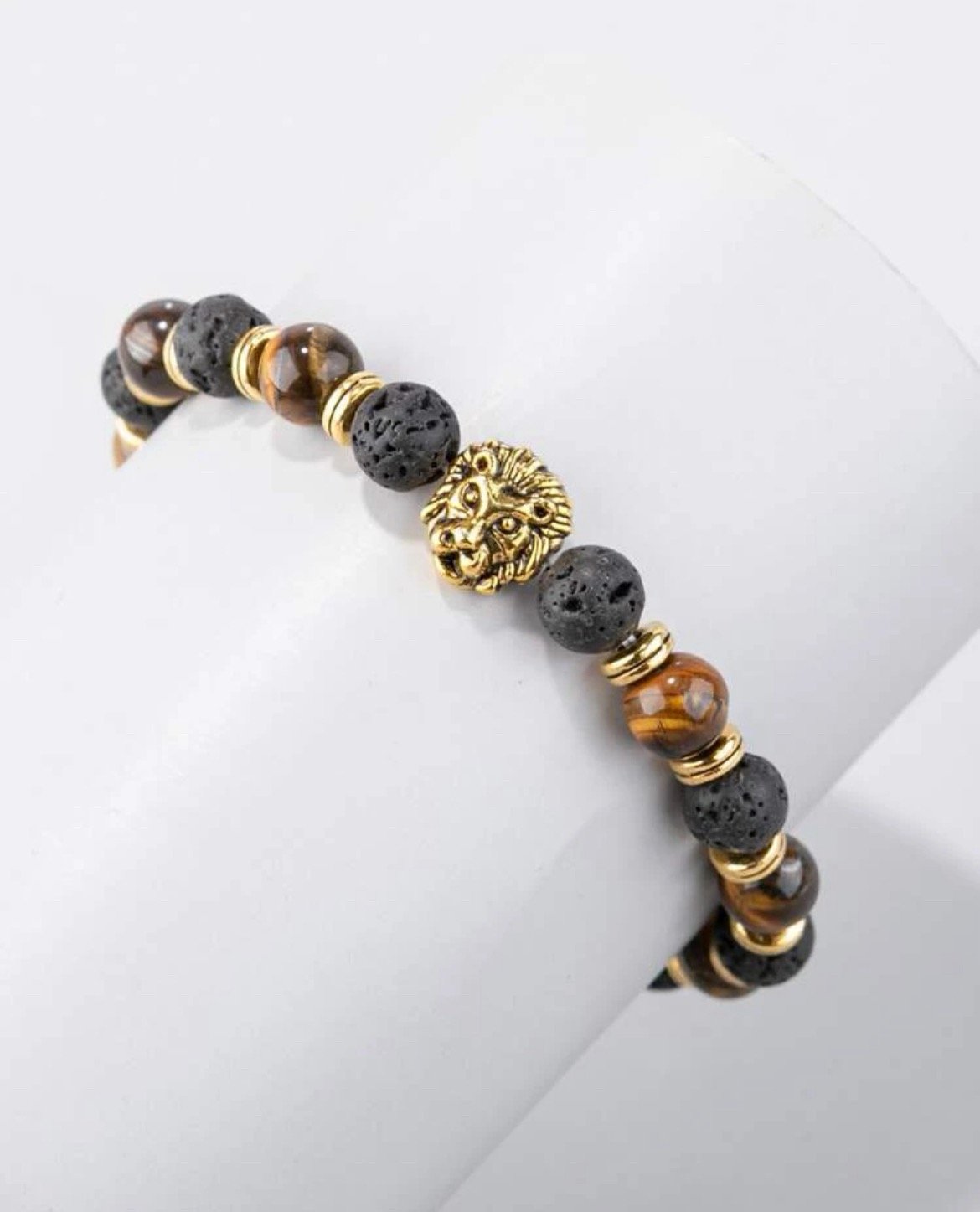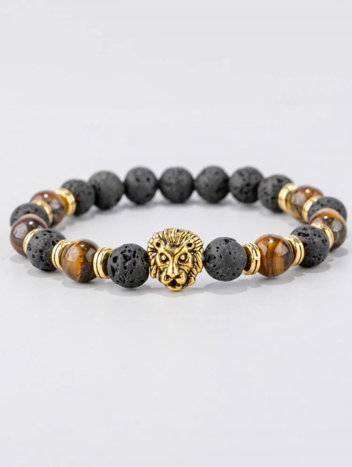 Glass Men Lion Decor Tiger Eye Beaded Bracelet