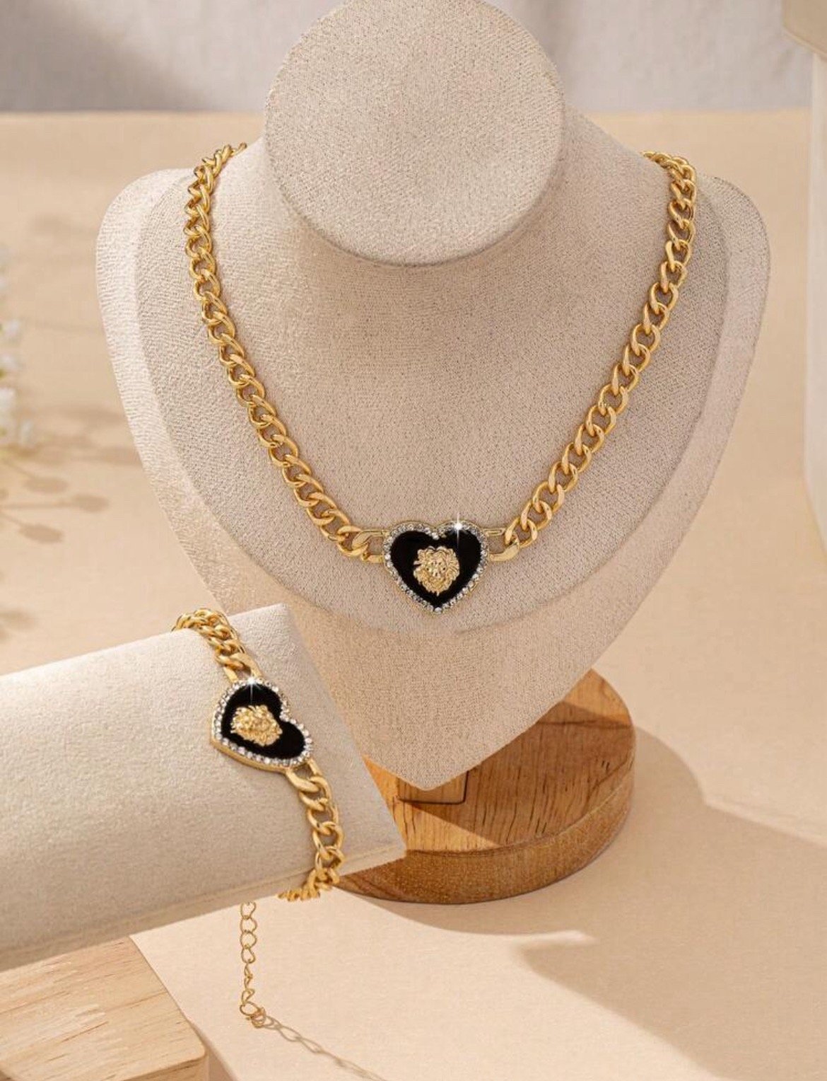 Metal Heart Lion Pattern Gold Plated Choker Female Necklace