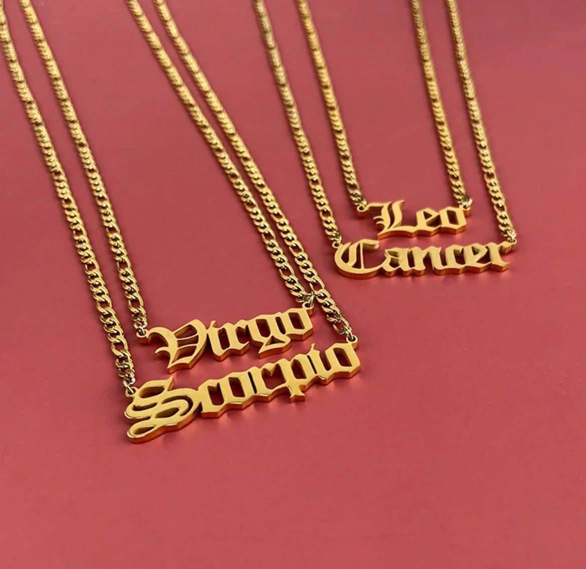 Dainty Cuban Link 18k Gold Stainless Steel Zodiac Sign Necklace